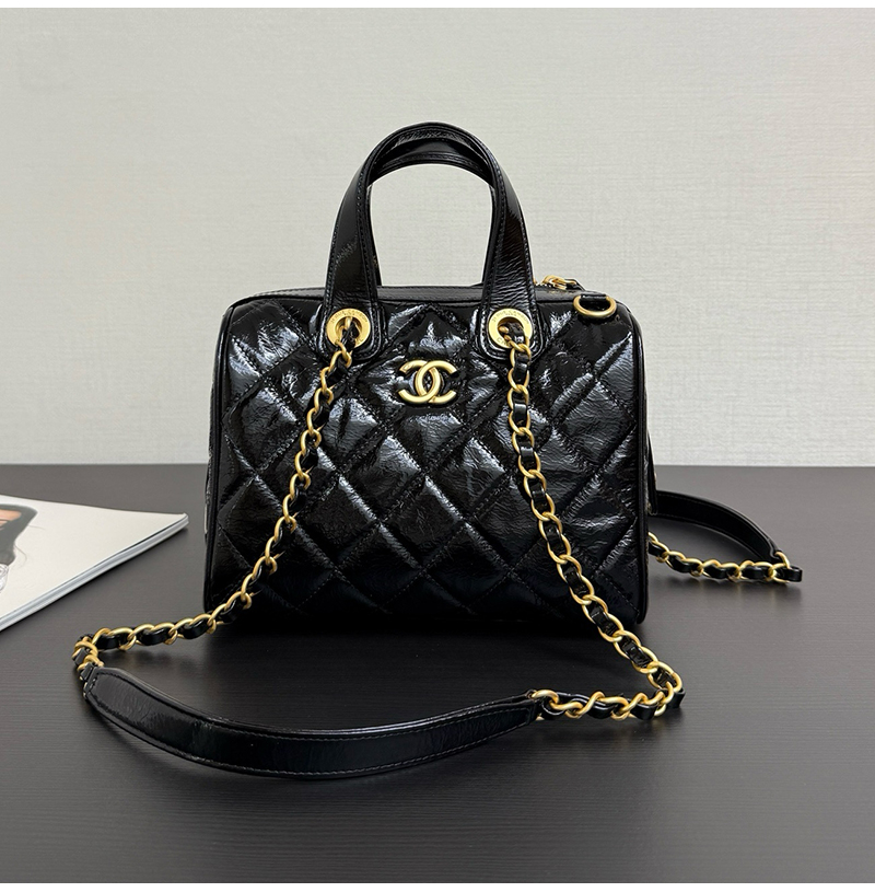 페이던트 소가죽이 지닌 고유한 광택감과 볼링백의 형태가