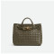갖춘 유연한 인트레치아토 가죽 소재의 탑 핸들 백.
